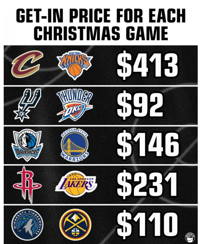 北京时间12月20日,随着NBA官方公布2024年圣诞大战完整赛程,Ticketmaster与StubHub等票务平台同步更新了各场比赛的二级市场最低票价,一组直观的数字勾勒出球迷对不同场次的热情差异与市场需求格局。根据最新统计,五场圣诞大战的最低票价分别为:尼克斯vs骑士413美元、热火vs湖人231美元、勇士vs独行侠146美元,其余场次介于两者之间。这组价格不仅反映了城市市场热度、球队号召力与对阵看点的差异,也折射出圣诞夜“篮球+节日”这一超级IP的商业分层效应——从“顶流对决”到“情怀重逢”,每张门票背后都是球迷用热情标定的“观赛价值”。