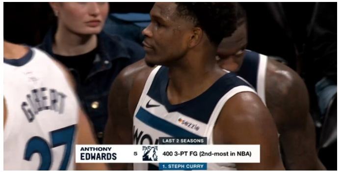 根据NBA Stats与Basketball-Reference的交叉验证,爱德华兹在2022–23赛季命中206记三分(场均2.8记),2023–24赛季命中194记三分(场均2.6记),两季合计400记,命中率分别为36.9%与37.1%,均高于联盟同期平均水准(约34%)。